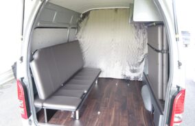 ハイエースS-GL標準ボディ4WDディーゼル、コンテナベッドをはじめ、スイングトレー、アイデアホールプレート、フットレストテーブルなどなど、、、GLADアイテムてんこ盛りのデモカーをご納車させていただきました。