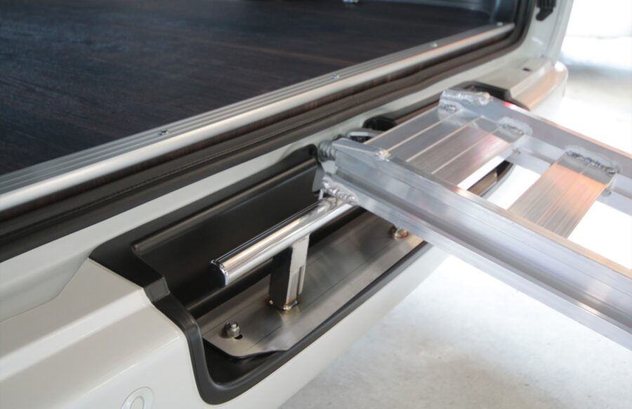 バイク積載用のはしご『ラダーレール』を引っ掛けるためのステーです。